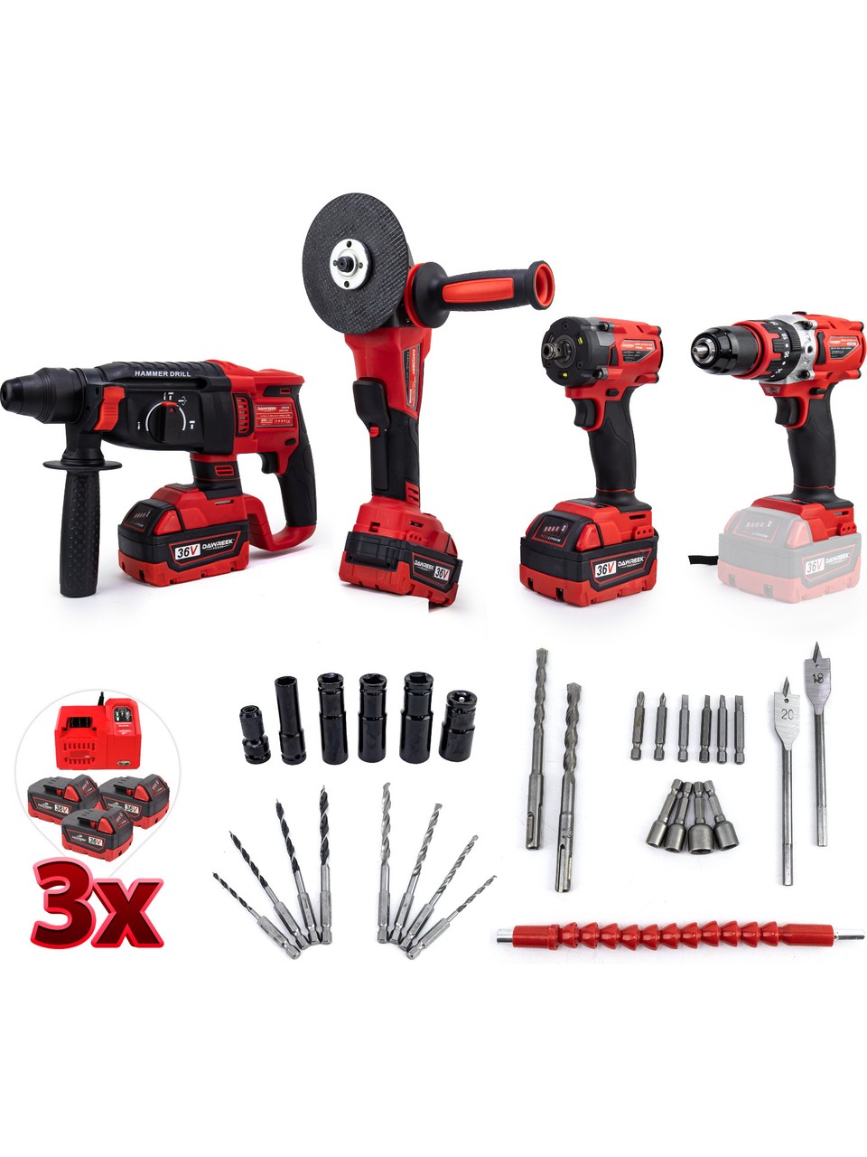 Dawreek MW600R Dörtlü Set, profesyonel kullanıcılar ve yoğun ev kullanımı için geliştirilmiş, yüksek performanslı bir tam donanım setidir. Set içerisinde bulunan şarjlı darbeli matkap, somun sıkma cihazı, spiral taşlama ve şarjlı hilti; 600NM maksimum tork ve 13MM çelik mandren özelliğiyle en zorlu işlerin altından kolayca kalkar.